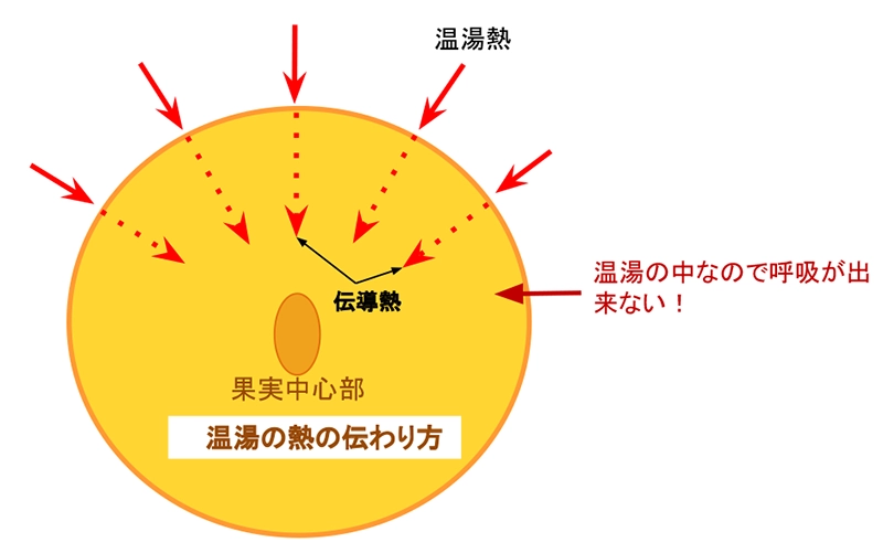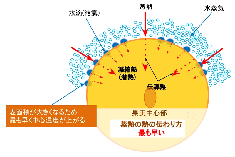 ◎ 蒸熱、温湯、乾熱処理の中で、最も青果物の中心温度が上がるのが早いので、殺虫効果は高い |